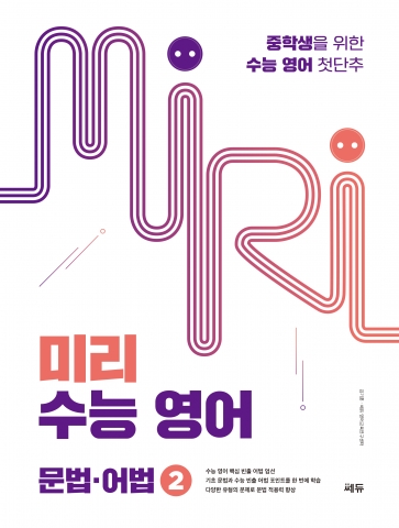 <미리 수능 영어 문법·어법 1, 2>는 UNIT으로 구성된 챕터에서 중학생이 반드시 익혀야할 문법을 먼저 학습한 뒤, 이어지는 챕터에서 관련된 수능 빈출 어법POINT를 학습하도록 구성하였다. 기초 문법에서 수능 어법으로 자연스럽게 연결되는 단계적학습을 통해 중학생도 부담 없이 수능 영어에 접근할 수 있다. 또한,지문형과 서술형의 다양한 문제 유형으로 수능과 내신 영어 대비를 한 번에 할 수 있다.