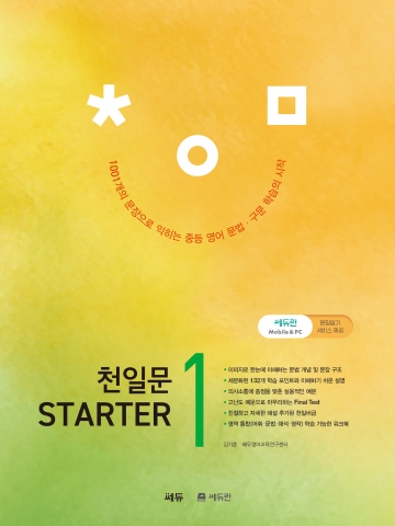 천일문 시리즈는 2004년첫 발간 이래 누적 판매부수 500만 부를 넘어서며 ‘문장중심 영어 학습’의 효과를 입증해왔다. 천일문 STARTER 시리즈에서는 20여년간 입증된 ‘천일문식 문장 중심 학습’을 중등의 눈높이로 재구성해 선보인다.