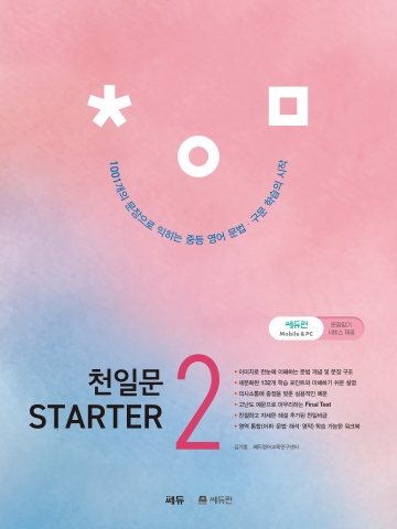 천일문 STARTER를통해 구문 학습을 처음 접하는 학습자들의 첫걸음이 가벼워지기를 희망하며, 이 교재를 통해 더 많은 학습자들이영어를 영어답게 학습할 수 있기를 희망한다.