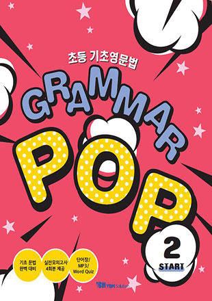 GRAMMAR POP Start는 초등학생을 대상으로 한 문법 시리즈로 총 두 권으로 구성되어 있습니다. 각 권의 문법 요목은 단계적으로 구성되어 두 권을 모두 학습하면 기초적인 초등 영문법을 완성할 수 있습니다.